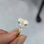 Stunning 3.80tcw Oval Lab-Grown Diamond Engagement Ring with pear and round side stones. Features 3.00ct center, DEF color, VVS–VS clarity. IGI certified. Customizable in 10k/14k/18k gold. Ethically made, ships in 5–7 days from India.