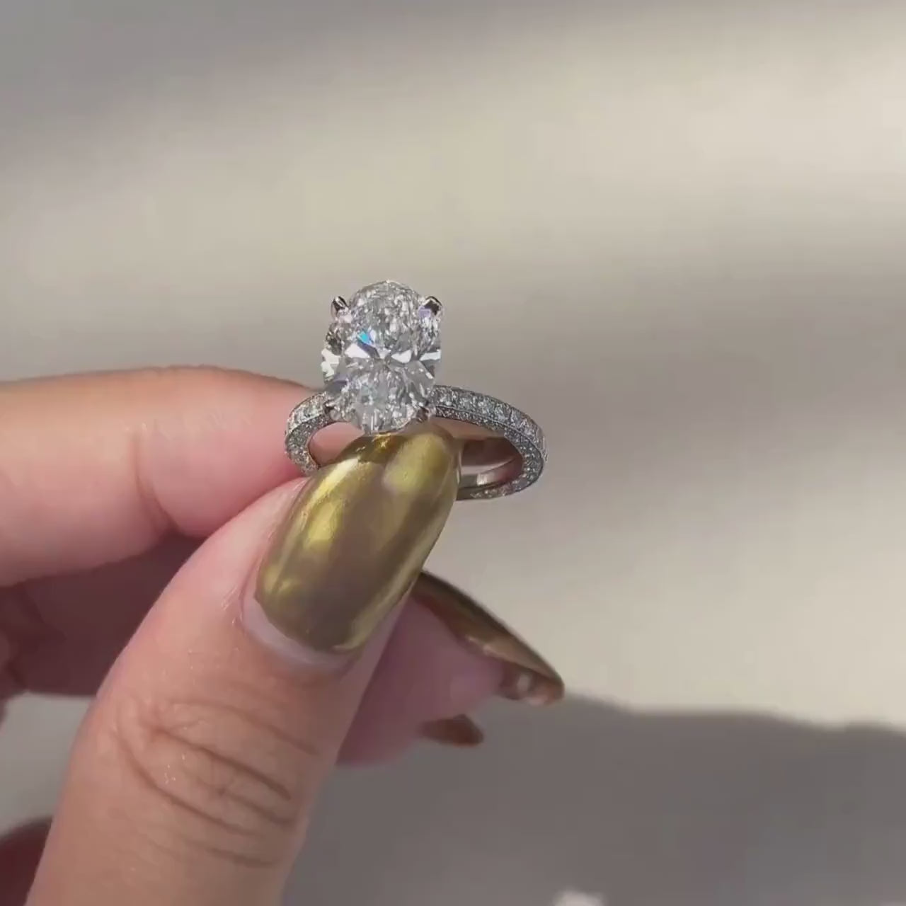 4.00tcw Oval Lab Grown Diamond Engagement Ring | 3.00ct Center | Hidden Halo | IGI Certified