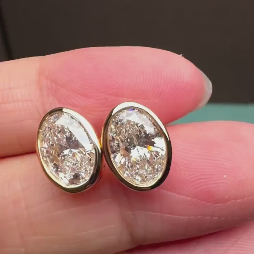 Oval 4.00tcw Lab Grown Diamond Bezel Set Stud Earring, D-E-F Color, VVS-VS Clarity - IGI Certified