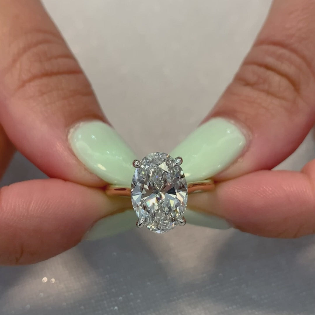 Oval 4.20tcw Lab Diamond Solitaire Engagement Ring | Hidden Halo | IGI Certified | Yellow Gold