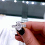 This 4.80tcw lab-grown diamond ring features a dazzling 3.00ct oval center, hidden halo, and pavé band for extra sparkle. IGI certified, D-E-F color, VVS-VS clarity — handcrafted in white gold with ethical elegance and timeless brilliance.