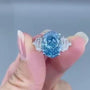 Capture attention with this 5.00tcw Blue Oval Lab-Grown Diamond Three-Stone Engagement Ring.