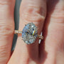 Stunning 5.00tcw oval lab-grown diamond ring featuring a 4.50ct center and 0.50ct side + hidden halo stones. D-E-F color, VVS–VS clarity, IGI certified.