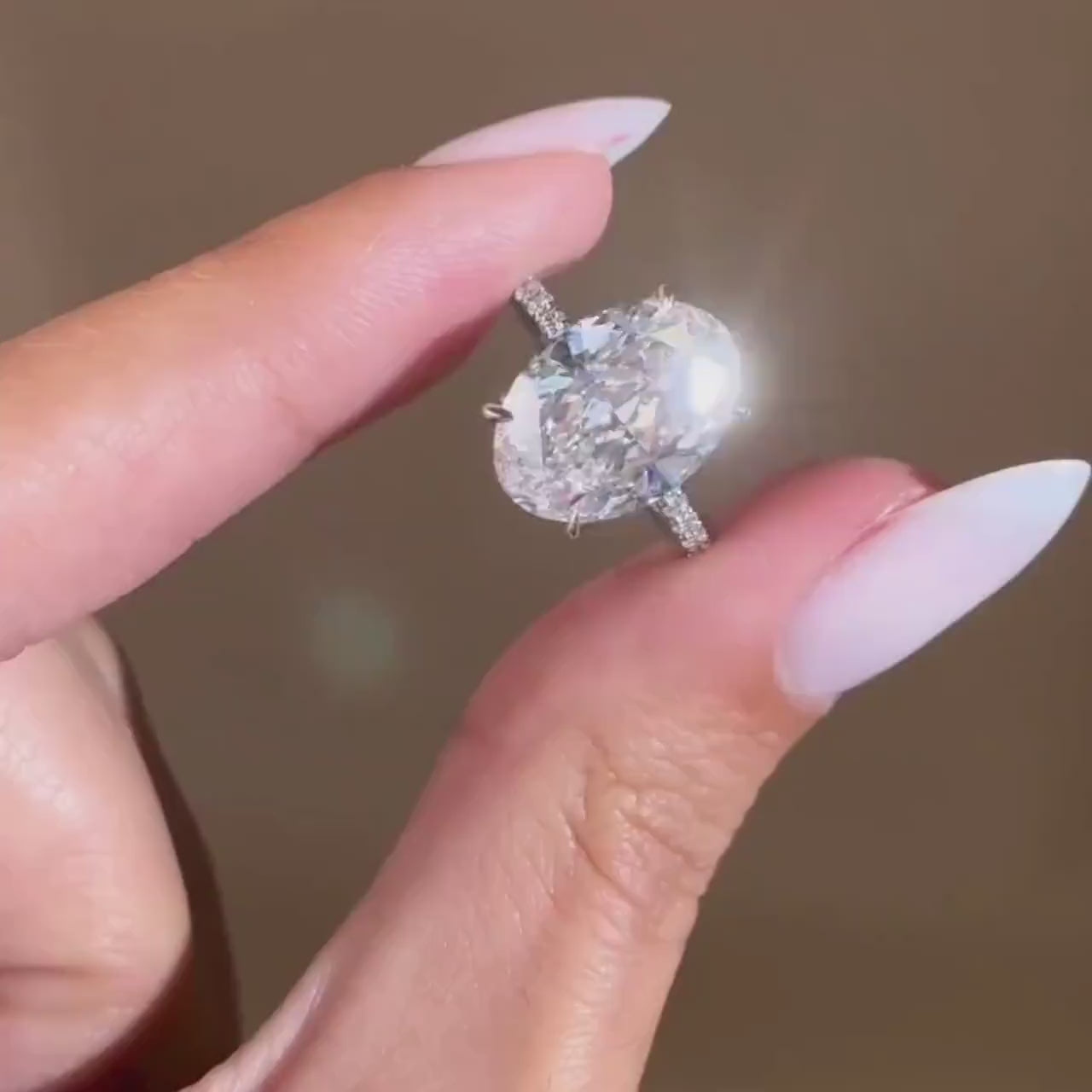 Make a grand statement with this 5.20tcw Oval Lab-Grown Diamond Engagement Ring. Showcasing a 5.00ct center stone and 0.20ct round pave diamonds, this IGI-certified masterpiece shines with DEF color, VVS–VS clarity, and sustainable elegance.