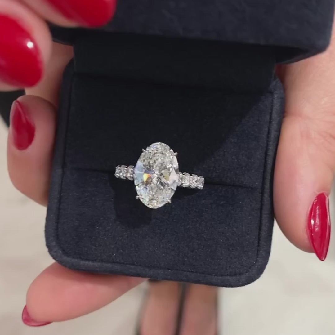 Oval 5.80tcw Lab Diamond Ring | Scalloped Pavé | Cathedral Setting | IGI Certified