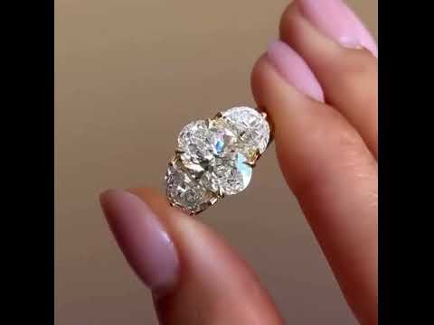 Oval 6.00tcw Lab Diamond Three-Stone Engagement Ring | IGI Certified | Yellow Gold