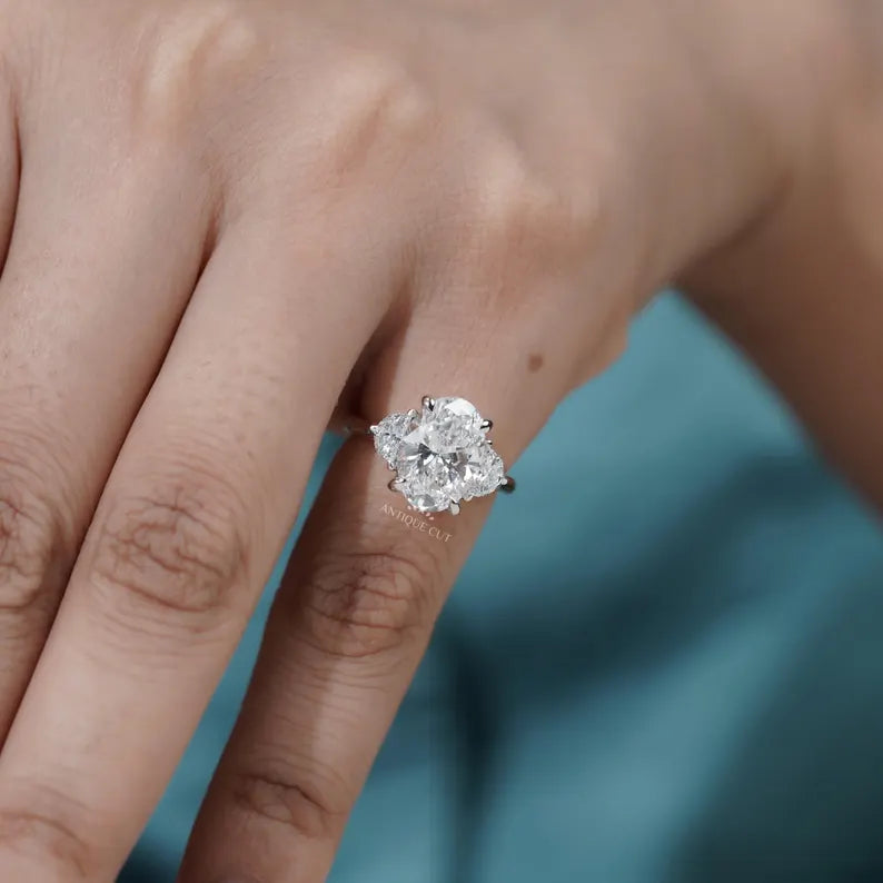 Celebrate a love that honors the past, embraces the present, and dreams of the future with this elegant oval cut three-stone engagement ring. At its center, a captivating oval-cut diamond radiates exceptional brilliance, its elongated silhouette offering a graceful and timeless presence on the hand. Flanked by two perfectly matched side stones, the design enhances the center diamond’s sparkle while symbolizing the journey of enduring love and commitment.
