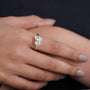 Both stones are selected for bright D–F color and VVS–VS clarity, offering crisp sparkle and a polished finish. Available in 10K, 14K, 18K gold or Platinum, this piece works beautifully as an engagement ring, anniversary ring, or statement fine-jewelry piece.