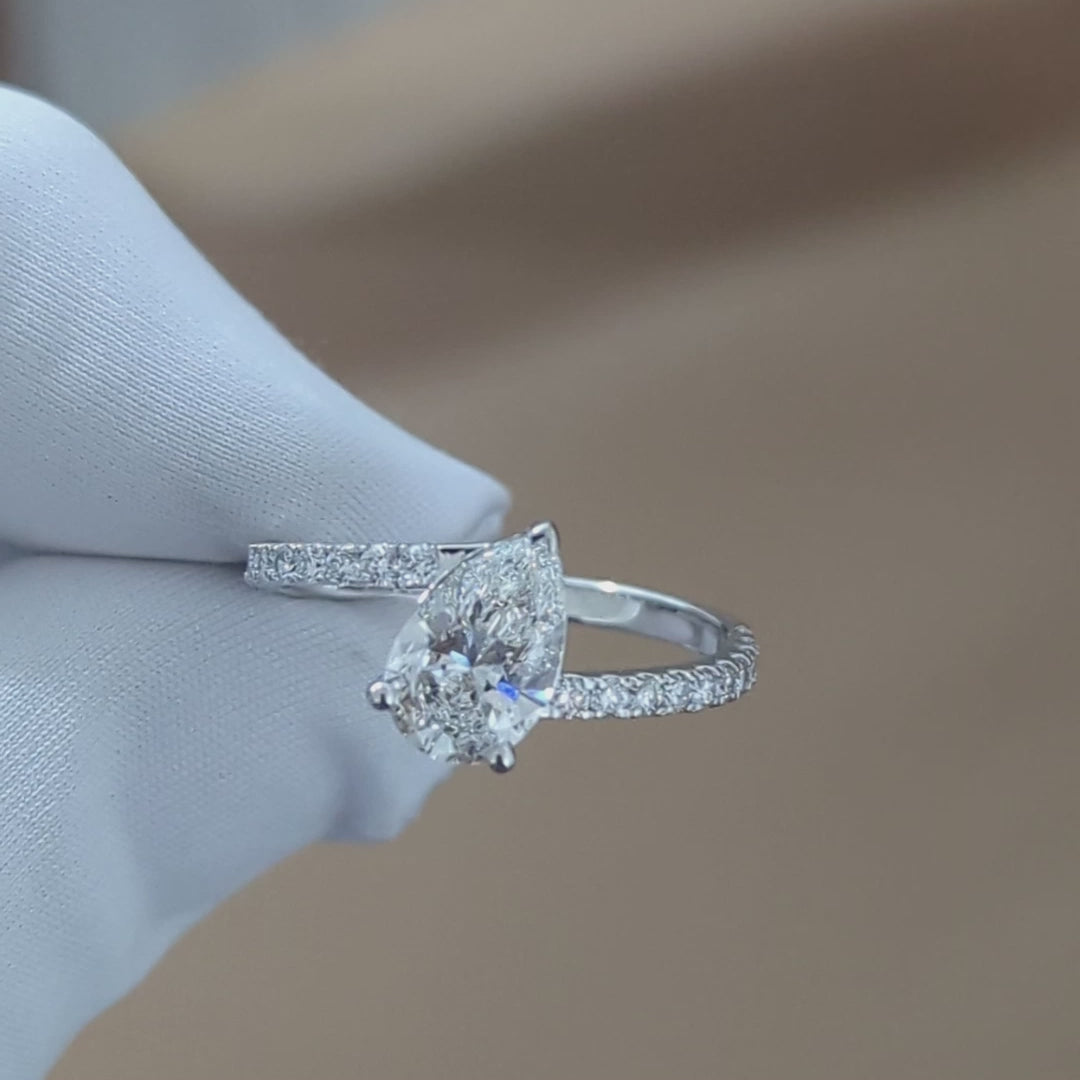 Pear 2.00tcw Lab Grown Diamond Bypass Engagement Ring | IGI Certified | Pave Set