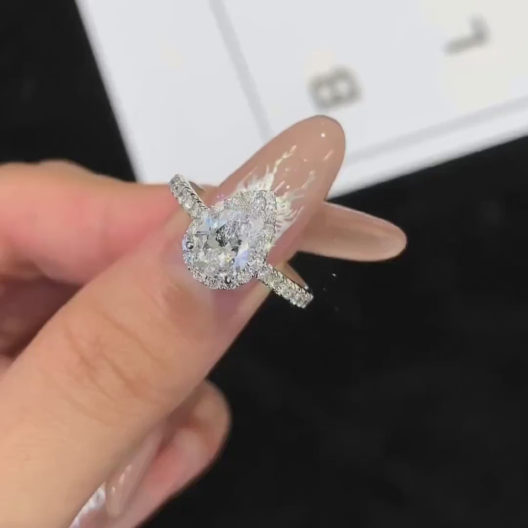 Pear 2.00tcw Lab Diamond Halo Cathedral Ring | IGI Certified | DEF VVS–VS
