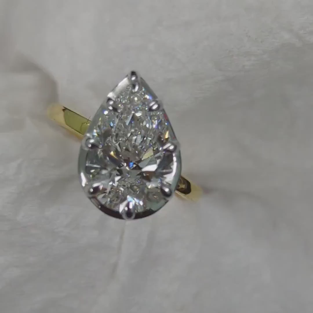 Pear 3.00ct Lab Diamond Ring | Two-Tone Gold | IGI Certified | D-E-F Color | VVS–VS