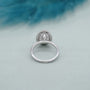 • Timeless halo design and elegant pavé band for added brilliance and sophistication