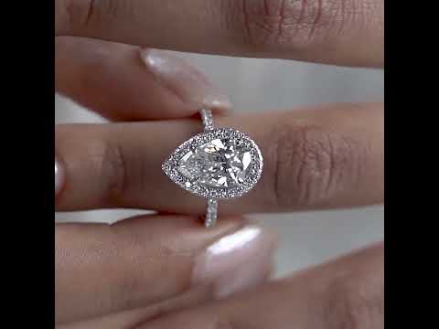 Pear 3.20ct Halo Lab Diamond Ring | Pave Band | IGI Certified