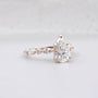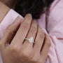 The band is designed with vintage-inspired marquise details that give the ring a graceful and refined look. The cathedral structure lifts the center stone slightly higher, allowing more light to pass through for added brilliance. Available in 10K, 14K, 18K yellow, white, rose gold, or Platinum, each lab-grown diamond is selected for bright D–F color and VVS–VS clarity.