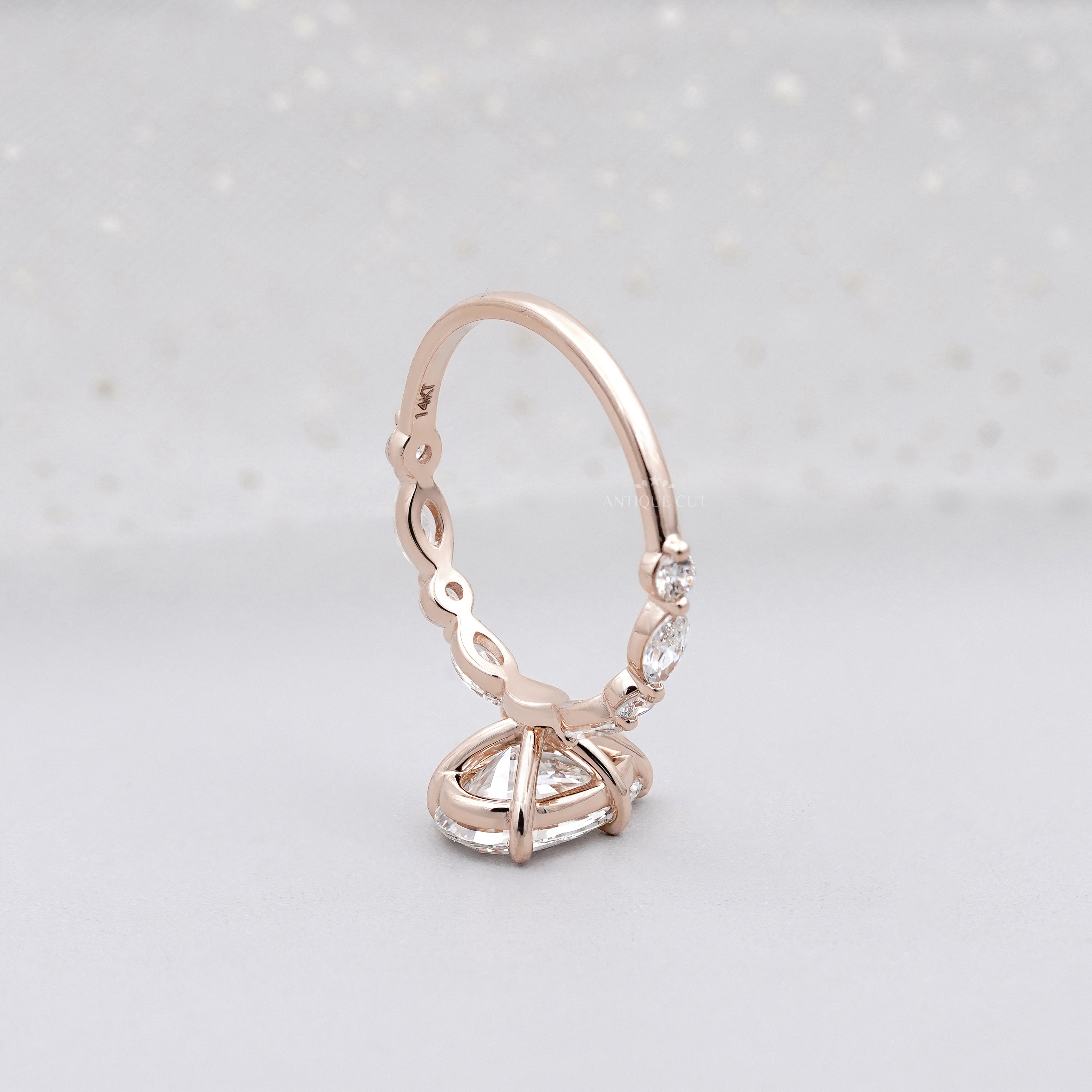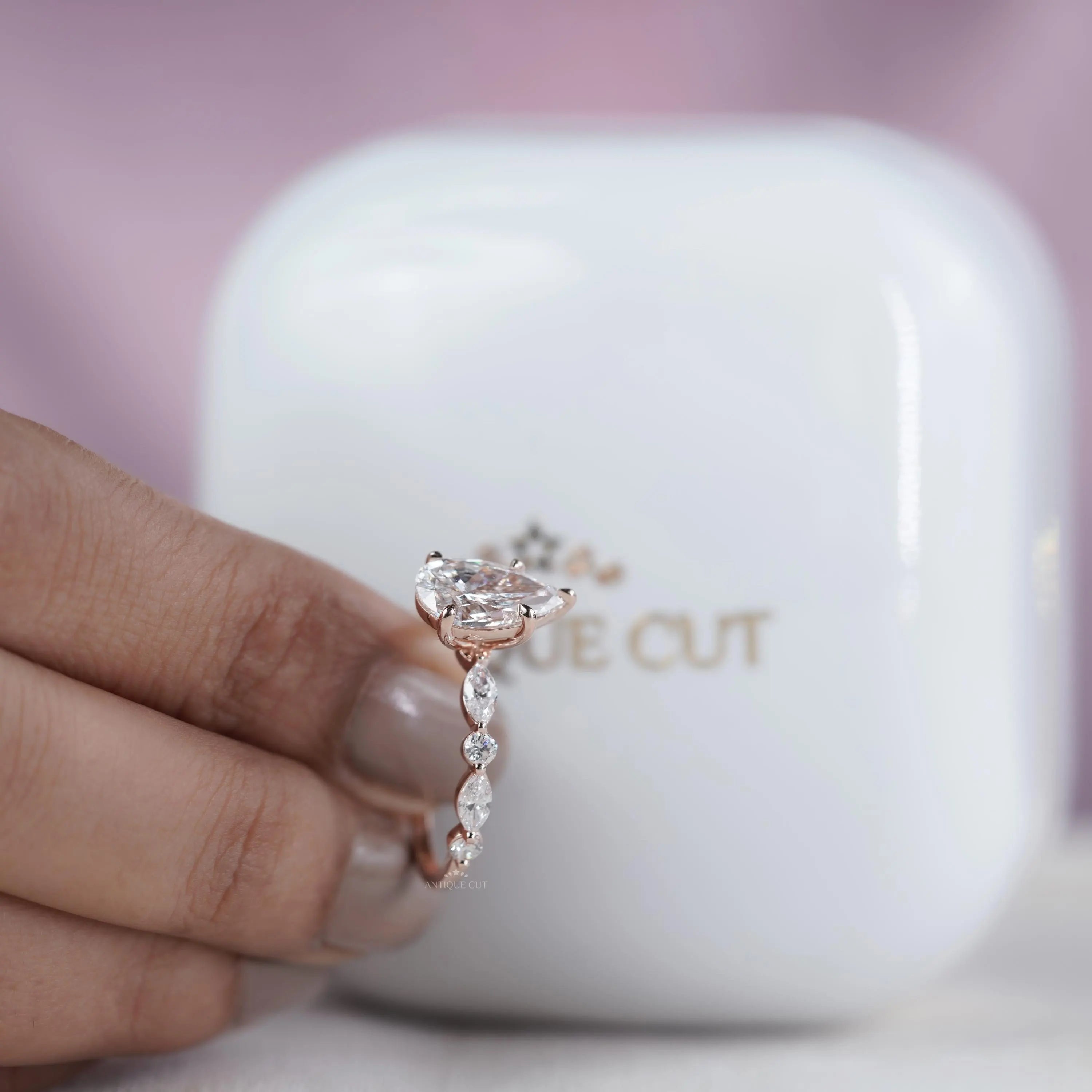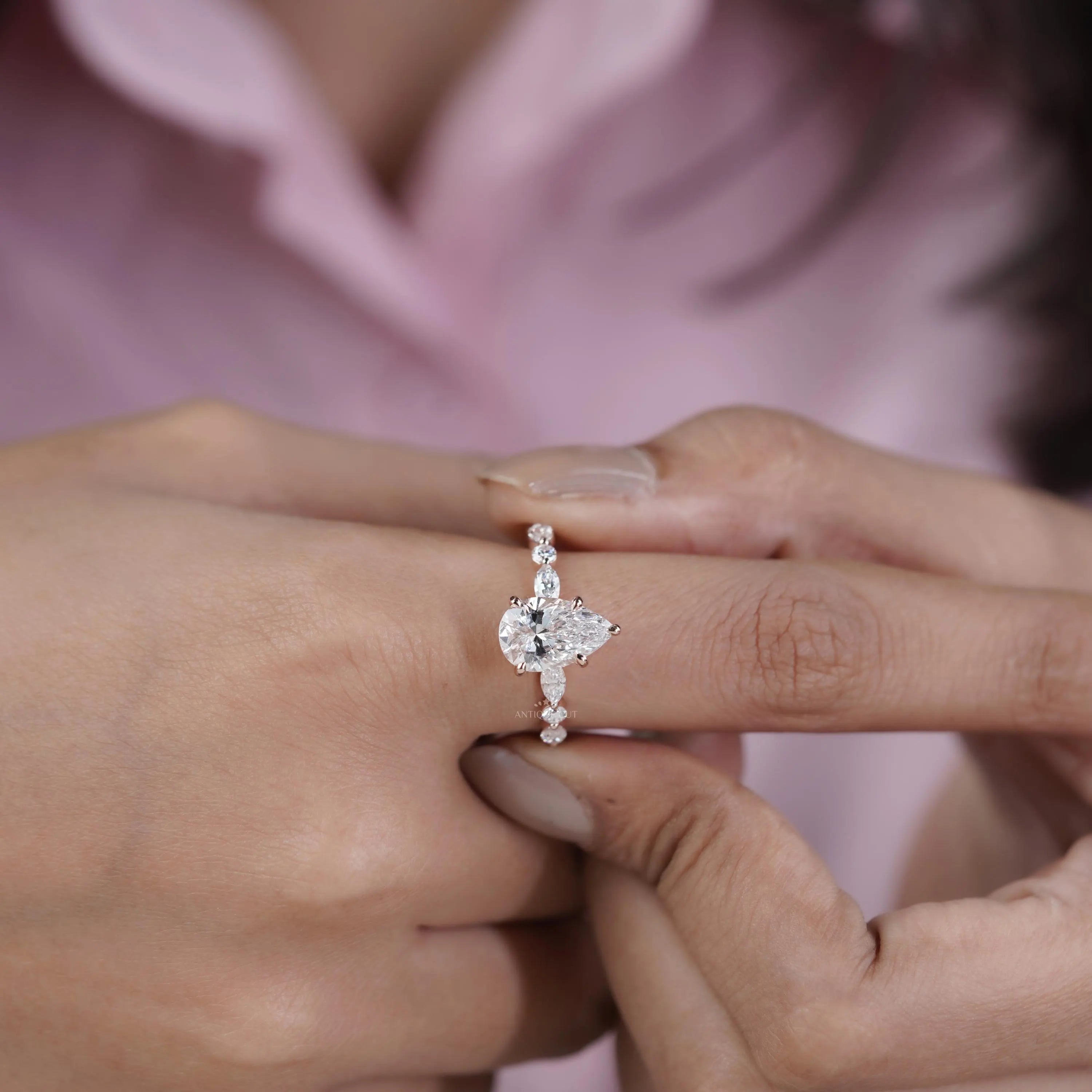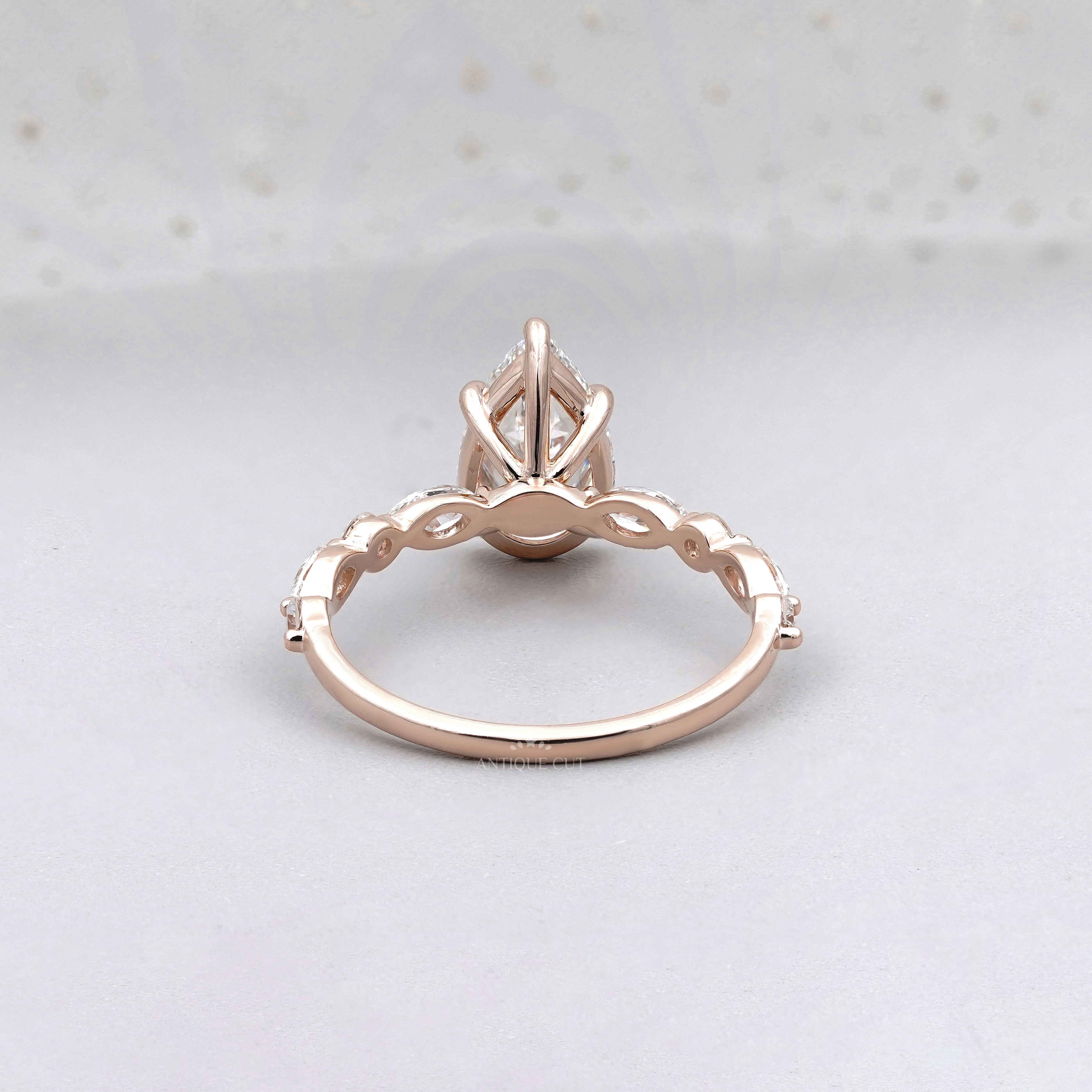 Pear 3.34tcw Lab Grown Diamond Vintage Engagement Ring | Marquise Side Stone Band | D–F Color | VVS–VS Clarity | IGI Certified