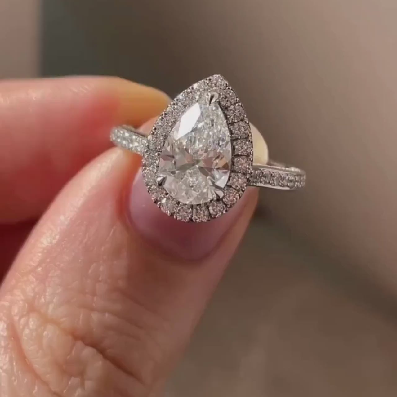 3.50tcw Pear Lab Grown Diamond Halo Pave Engagement Ring | IGI Certified | DEF Color | VVS–VS Clarity