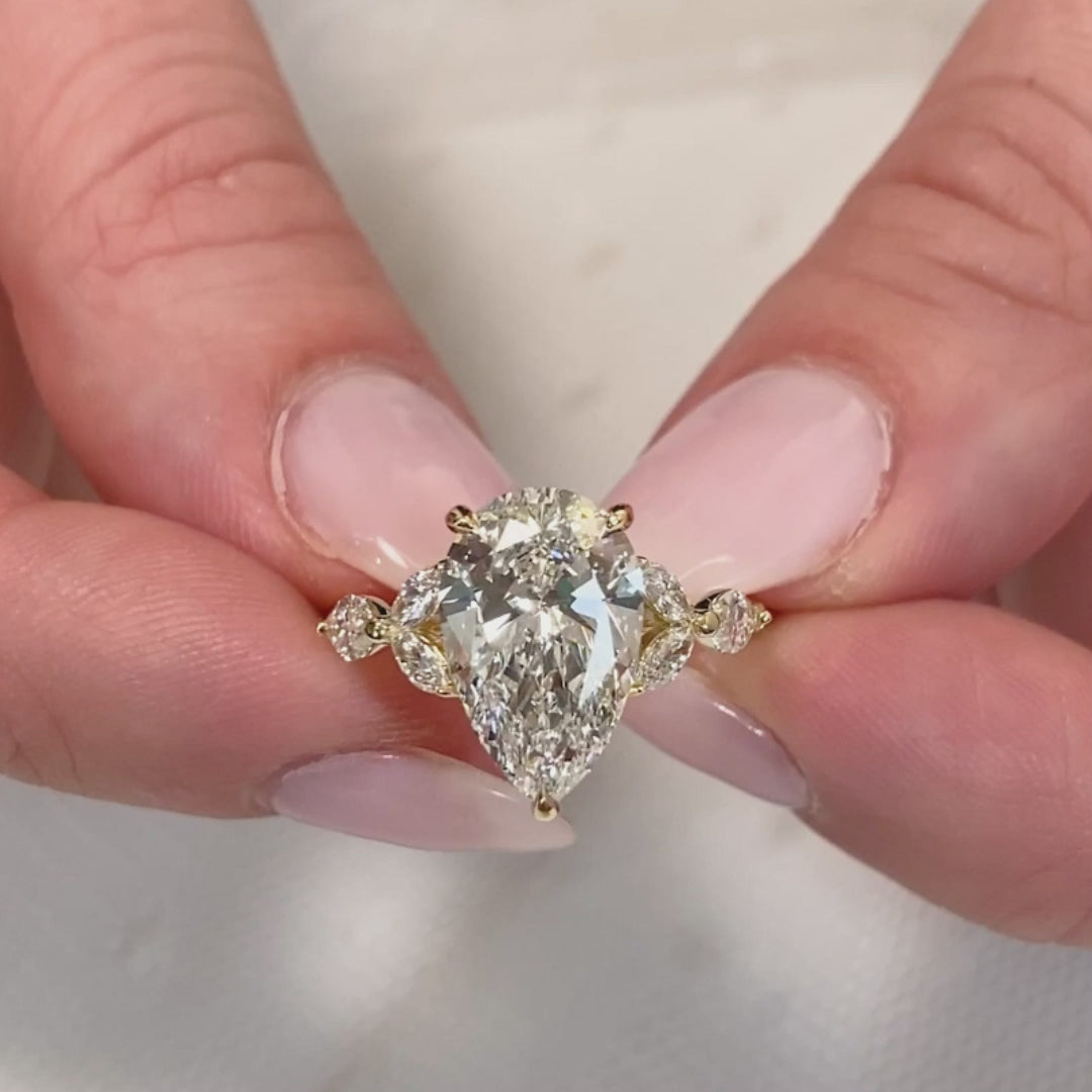Pear 3.90tcw Lab Grown Diamond Seven Stone Engagement Ring, EF Color, VS Clarity - IGI Certified