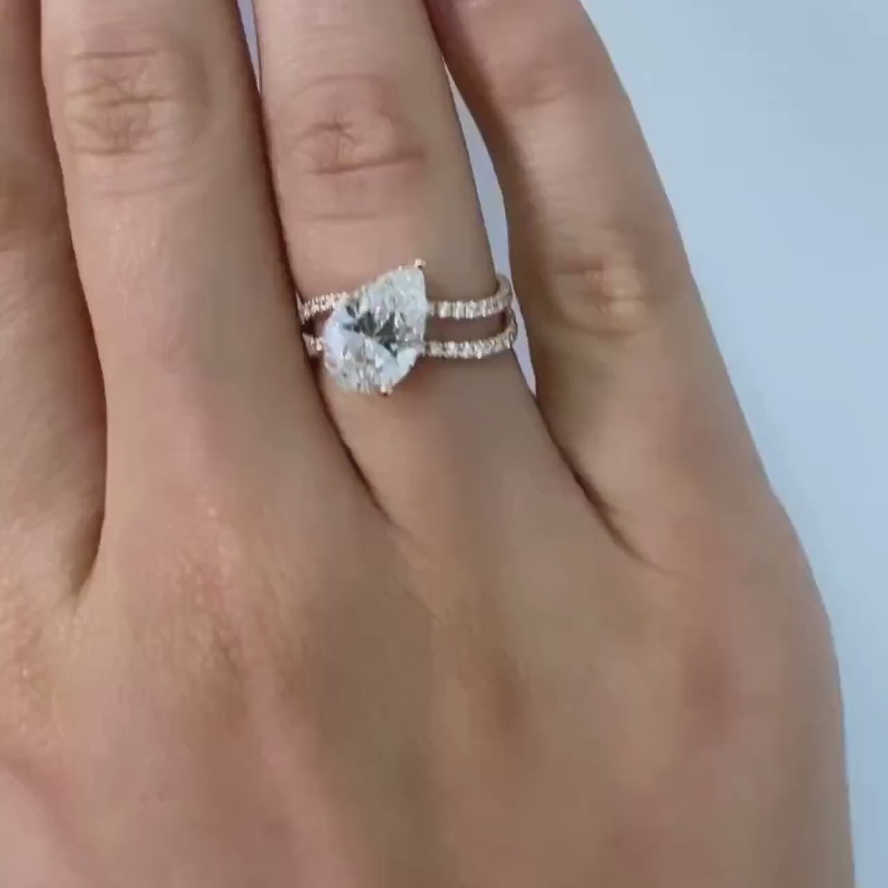 Pear 4.00ct Lab Diamond Double Wave Band Ring | IGI Certified D-E-F Color, VVS–VS Clarity