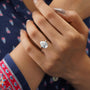 Celebrate your love story with this breathtaking Pear 4.60tcw Lab Grown Diamond Hidden Halo Engagement Ring, a perfect fusion of timeless beauty and sustainable craftsmanship. The centerpiece is a brilliant pear-shaped lab-grown diamond, ethically created and expertly cut to maximize brilliance, fire, and clarity. Nestled just beneath the center stone is a hidden halo of sparkling round diamonds, designed to catch the light with every movement and add a soft shimmer from the sides—an elegant surprise that enhances the overall sparkle.