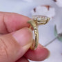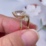 Bold and romantic, this 5.50tcw Pear lab-grown diamond ring features a 5.00ct center stone and 0.50ct pear side stones in an elegant bypass setting. IGI certified, DEF color, VVS–VS clarity, and handcrafted in 10k/14k/18k white gold for an ethical forever choice.