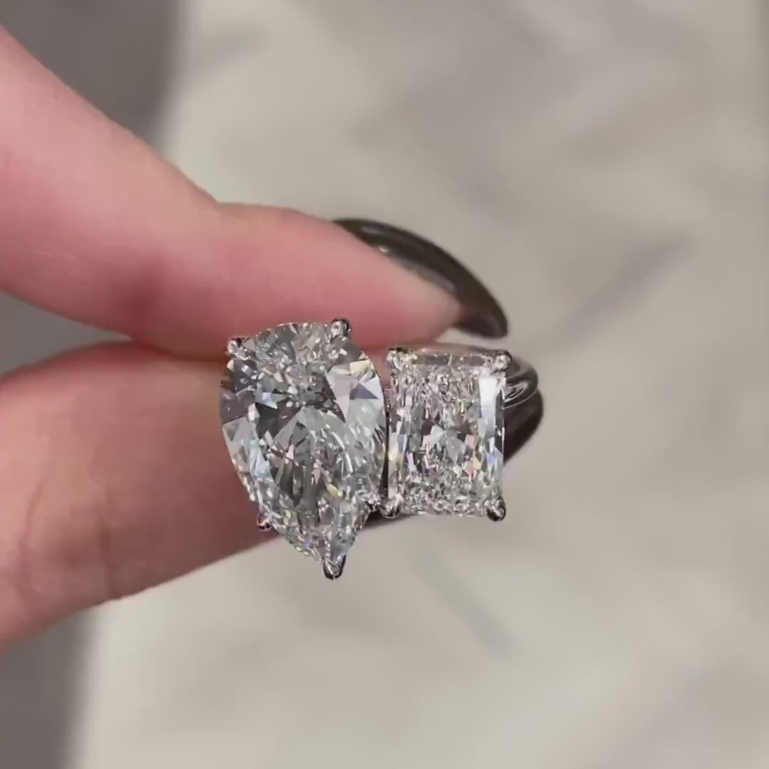 ✔ Dual diamond Toi et Moi – 2.50ct pear + 1.00ct radiant