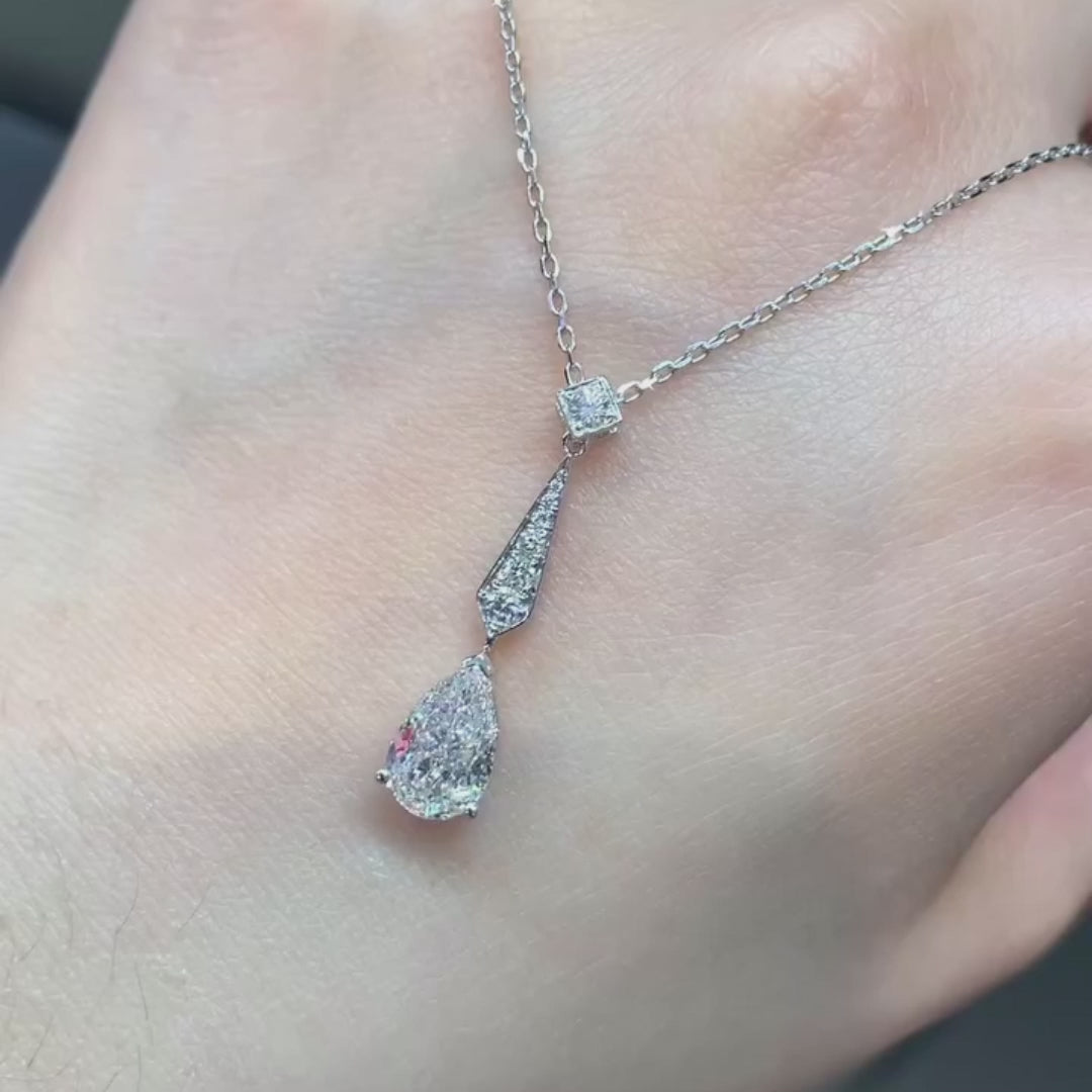 Pear And Round 1.50tcw Lab Grown Diamond Drop Pendant Necklace, D-E-F Color, VVS-VS Clarity