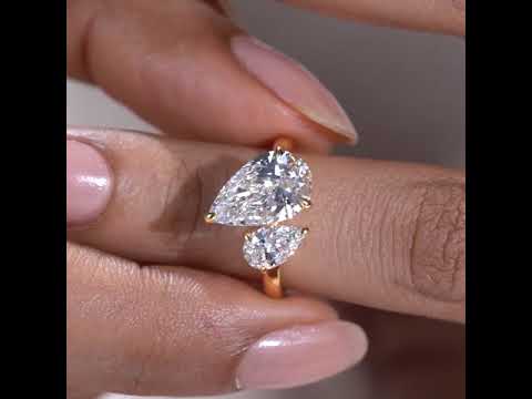 Pear Duo 4.00tcw Lab Diamond Ring | IGI Certified | Contemporary Toi Et Moi in Yellow Gold