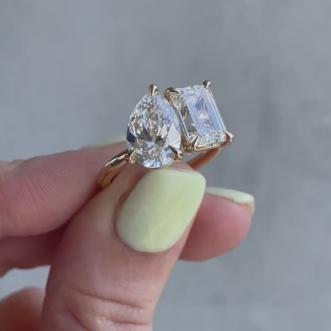 Pear & Emerald 3.50tcw Lab Diamond Toi et Moi Ring | IGI Certified | D-E-F VVS–VS