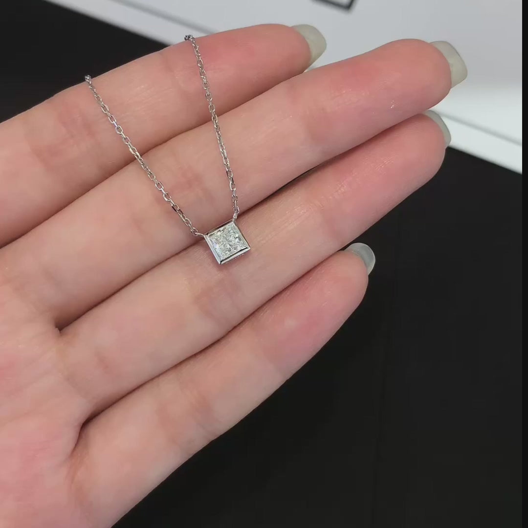 Princess 0.30ct Lab Diamond Bezel Pendant Necklace | IGI Certified | EF VS | Custom Gold