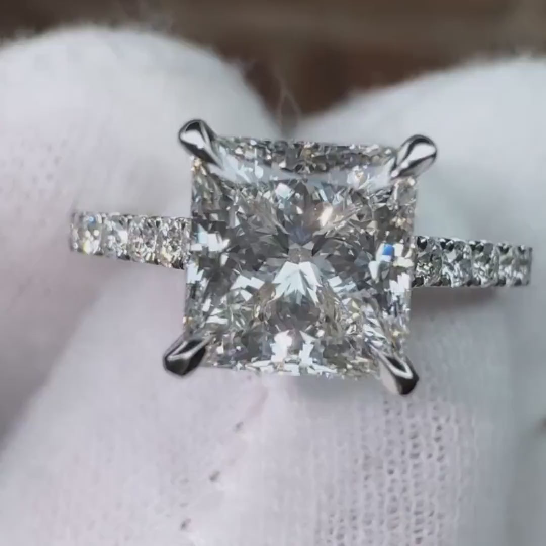 Princess 2.20tcw Lab Diamond Ring | Hidden Halo & Side Stones | IGI Certified | White Gold