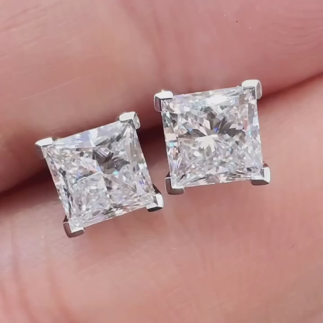 Princess 4.00tcw Lab Grown Diamond Stud Earring, D-E-F Color, VVS-VS Clarity - IGI Certificate