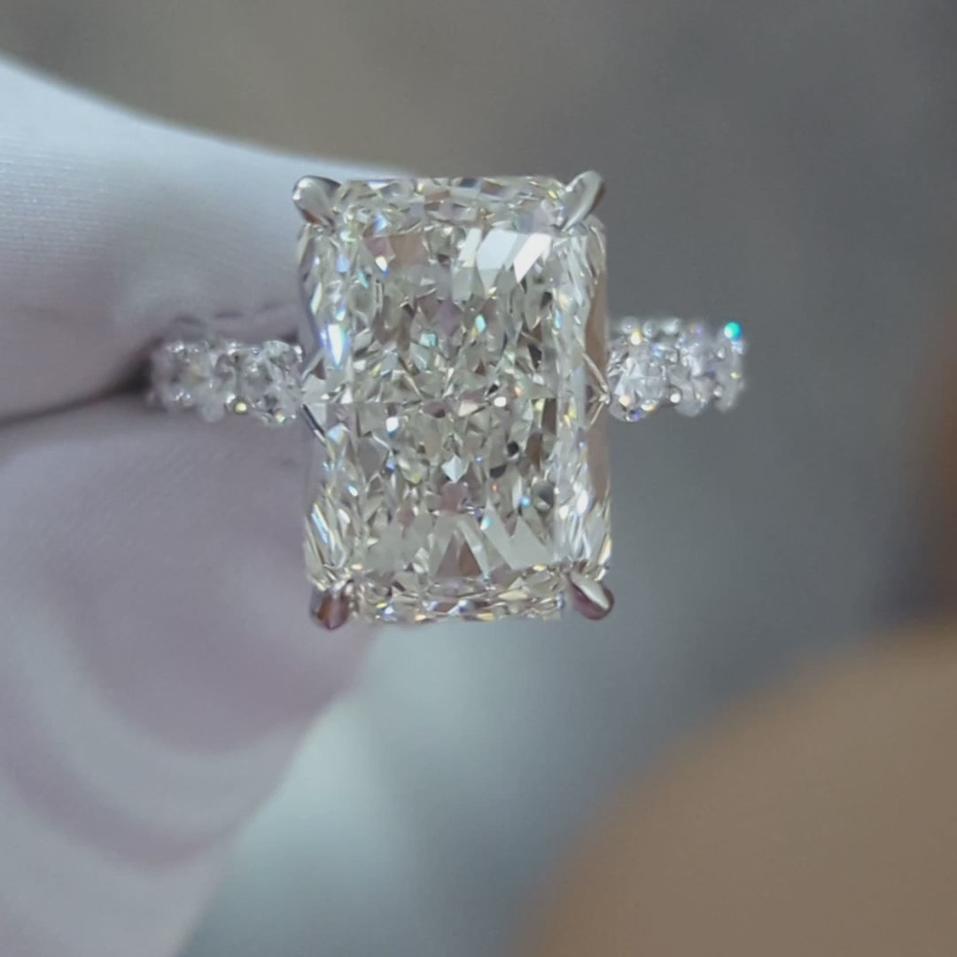 Radiant 12.80tcw Lab Diamond Ring | Hidden Halo | Scalloped Pavé | IGI Certified | EF VS