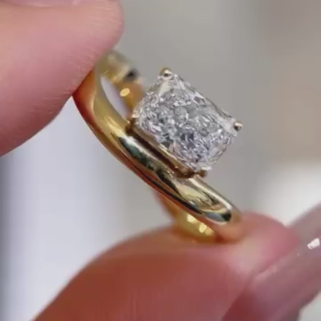 Radiant 2.00ct Lab Grown Diamond Solitaire Engagement Ring | Yellow Gold | D-E-F Color, VVS–VS Clarity | IGI Certified | Classic Modern Ring