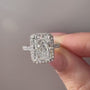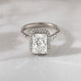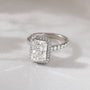 • Brilliant 2.20ct radiant center with 0.50ct halo and side stones