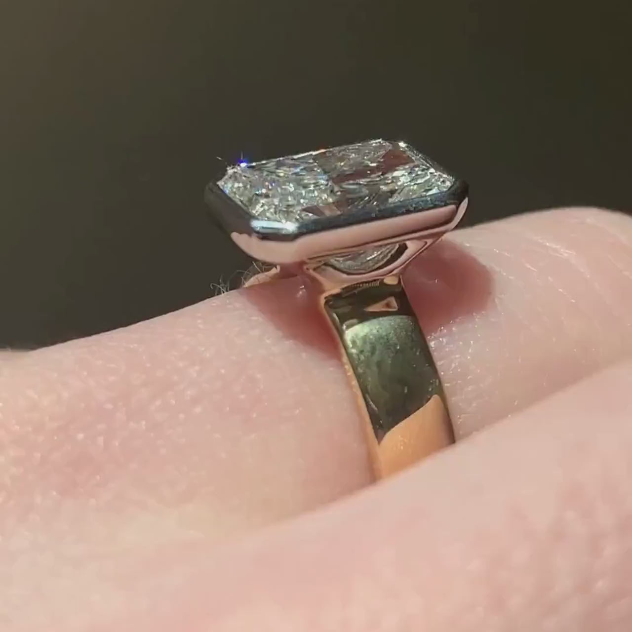 Bezel Set Radiant 3.00ct Lab Diamond Ring | Two-Tone Yellow & White Gold | IGI Certified