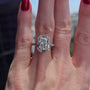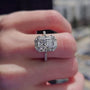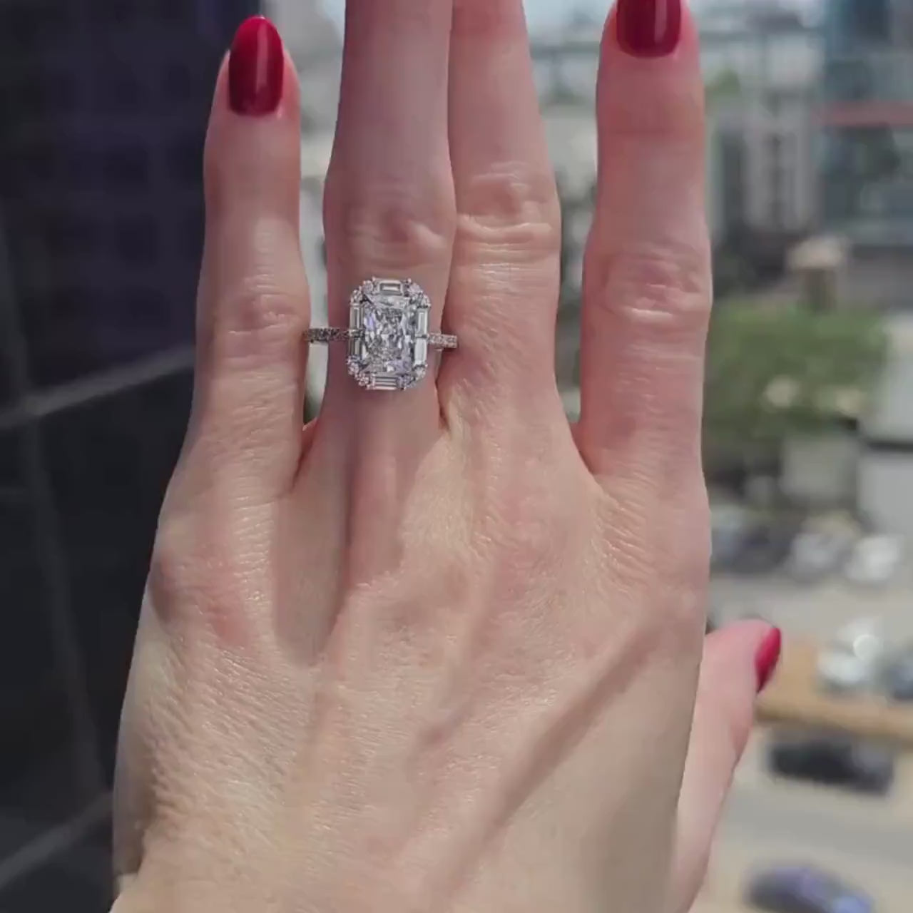 Celebrate your love with this 3.00tcw Radiant Lab-Grown Diamond Halo Cathedral Ring in rose gold. Features a 2.50ct Radiant center with 0.50ct baguette and round halo side stones in DEF color, VVS–VS clarity. IGI Certified, eco-conscious, and handcrafted for timeless elegance and ethical luxury.