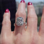 ✨ Design: Classic halo with modern touches of baguette and round cuts