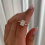 This 3.00tcw Radiant Lab Diamond Ring features a 2.50ct center stone with a hidden halo and 0.50ct pave band diamonds. Handcrafted in rose gold, IGI certified, and made with D-E-F color, VVS–VS clarity lab diamonds—perfect for modern, ethical elegance.