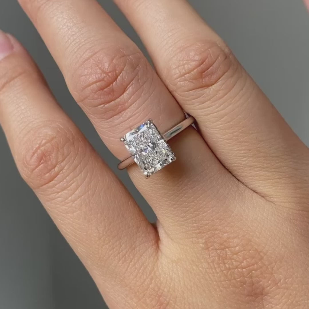 Radiant 3.10tcw Lab-Grown Diamond Ring | Hidden Halo Setting | IGI Certified | Ethical Ring