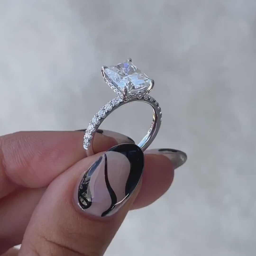Radiant 3.50tcw Lab Diamond Ring | Pavé Solitaire Setting | IGI Certified | Custom Gold Options