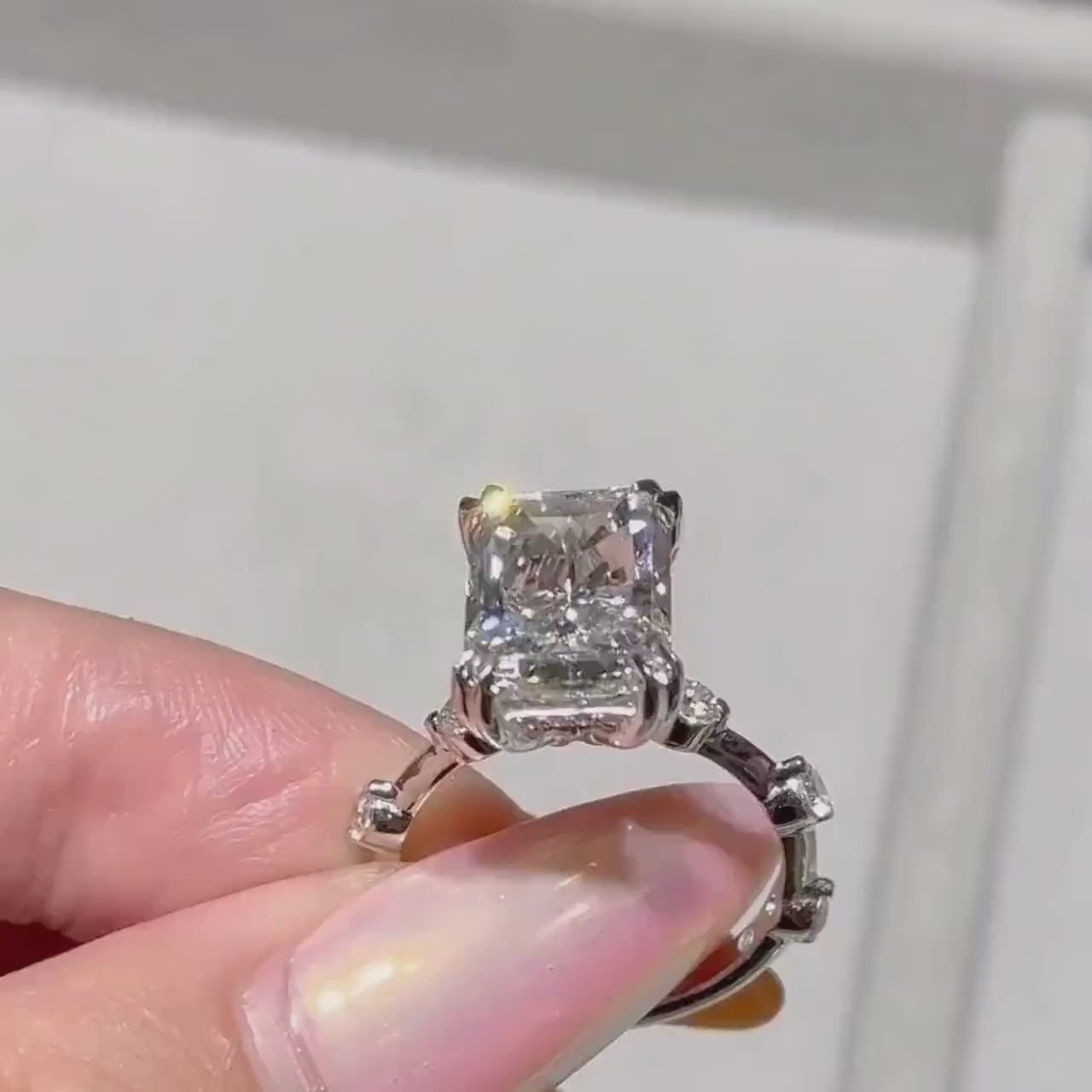 Radiant 5.30tcw Lab Diamond Ring | Hidden Halo & Accent Stones | IGI Certified