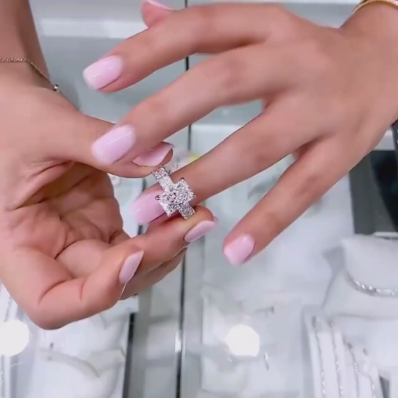 ● 2.30ct radiant side stones + hidden halo