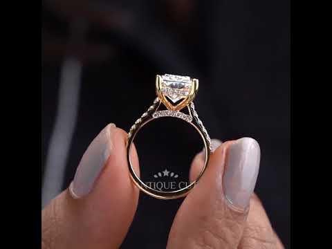 Radiant 5.60tcw Lab Grown Diamond Hidden Halo Pavé Engagement Ring | IGI Certified | Yellow Gold