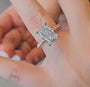 This 5.75tcw radiant-cut lab-grown diamond ring features a 4.10ct center stone accented with 1.65ct of round halo and side diamonds. Crafted in a bold two-tone gold design, the ring combines modern luxury with timeless elegance. All diamonds are IGI certified, DEF color, and VVS–VS clarity for exceptional sparkle and ethical beauty.