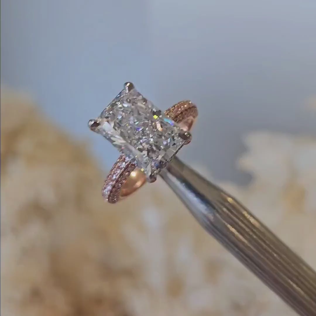 Radiant 5.75tcw Lab Diamond Hidden Halo Ring | Two-Tone | IGI Certified