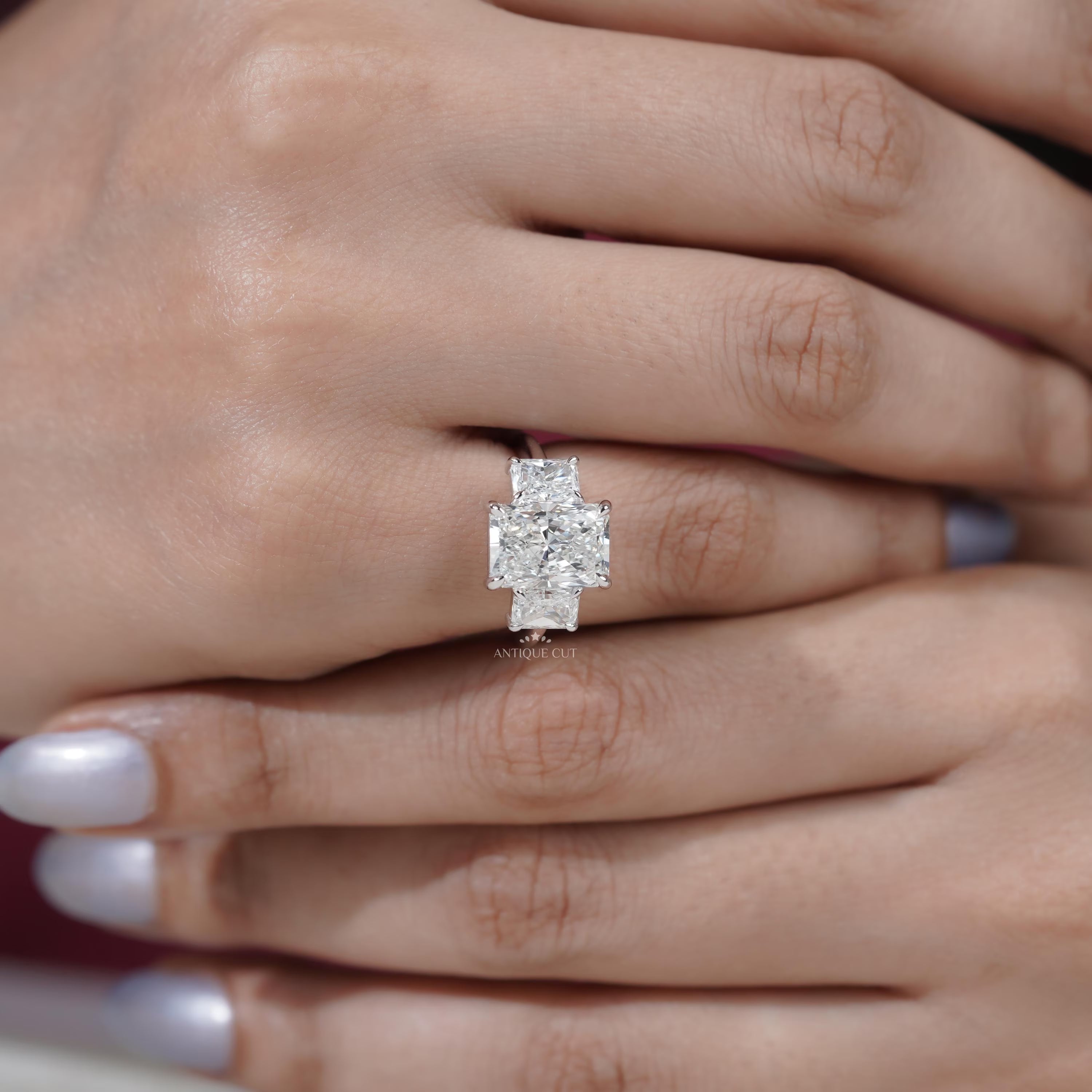 Three Stone Engagement Ring with Radiant Cut Diamond | Lab Grown Diamond