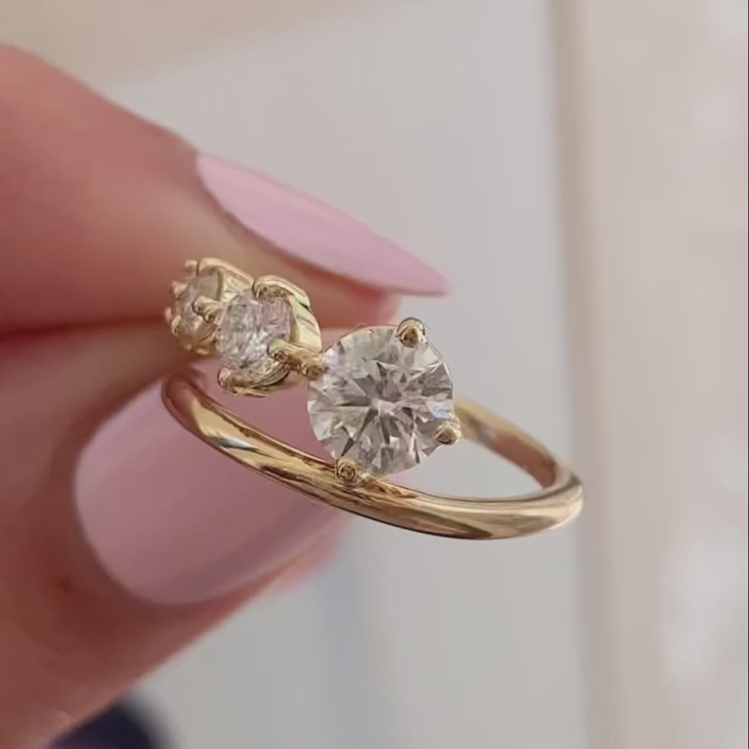 This 0.80tcw Round-cut lab-grown diamond engagement ring features a unique five-stone bypass design in 10k/14k/18k white gold. IGI certified, DEF color, and VVS–VS clarity — a modern, ethical ring symbolizing unity, motion, and love.