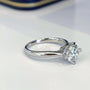 1.50ct round lab-grown diamond solitaire ring with 4 heart-shaped prongs and pavé band. IGI certified, DEF color, VVS–VS clarity. Romantic & ethical choice.