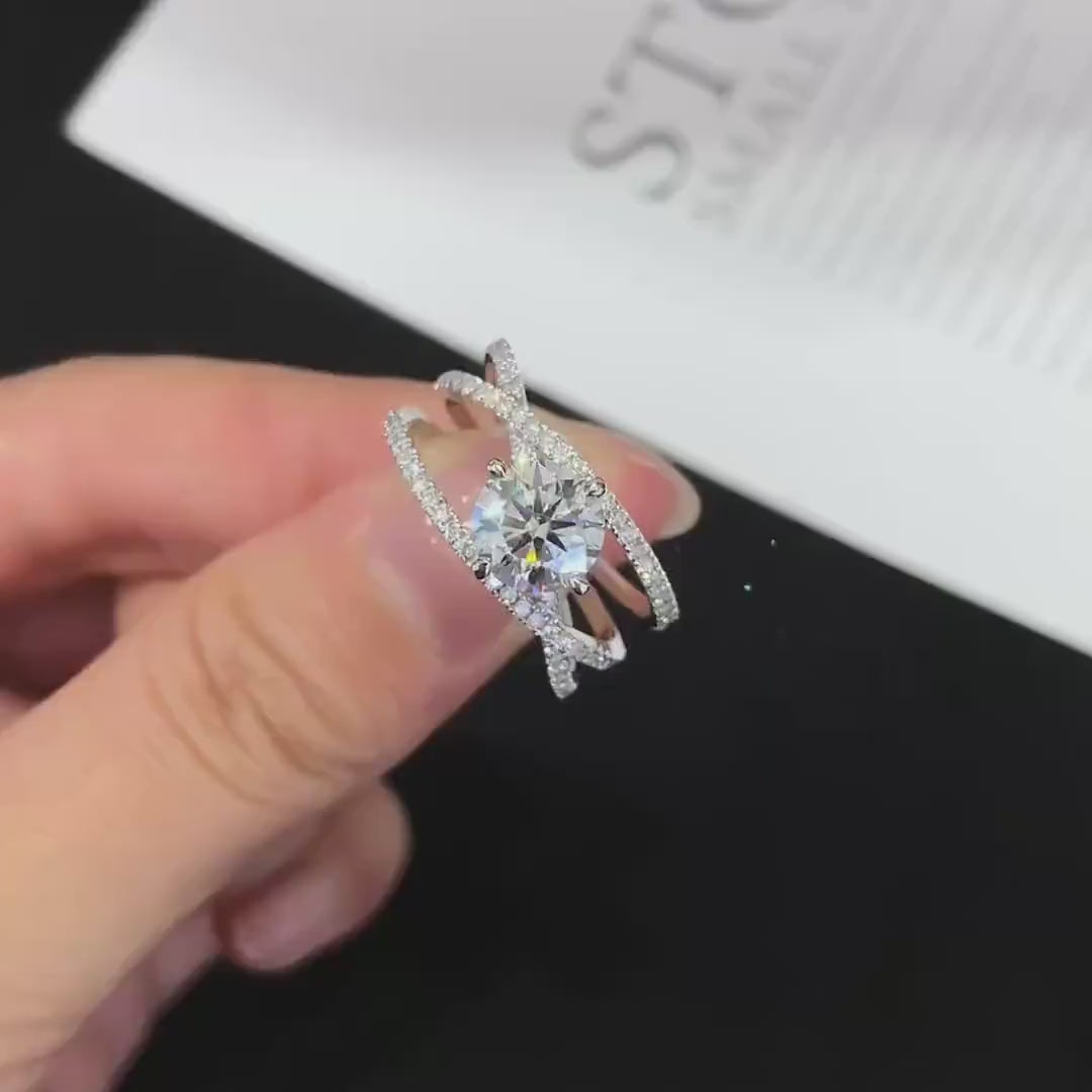 Celebrate your love with this 2.00tcw Round Lab-Grown Diamond Ring featuring a 1.50ct center and 0.50ct side stones. Set on a graceful triple wave band in 10k/14k/18k gold. IGI certified, DEF color, VVS–VS clarity — a bold yet refined choice.