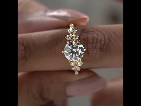 Round 2.30tcw Lab Diamond Engagement Ring | IGI Certified | Yellow Gold Cluster Side Stone Ring
